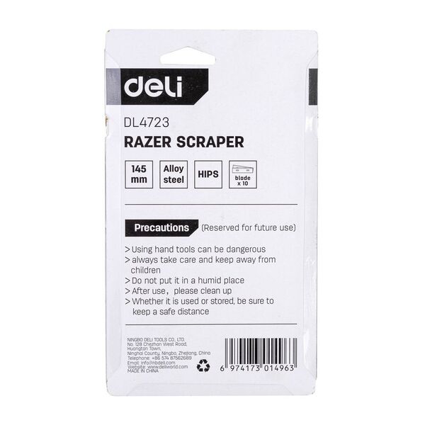 Скребок Deli EDL4723 145мм + 10 лезвий Ширина лезвия: 18 мм. Толщина лезвия: 0,5 мм. Высокопрочный пластик ручки. Лезвие из сплава. купить в интернет-магазине TPShop.Ru. Наличный и безналичный расчет, розничные и оптовые продажи. Самовывоз, доставка по Москве и МО, отправка во все регионы России.