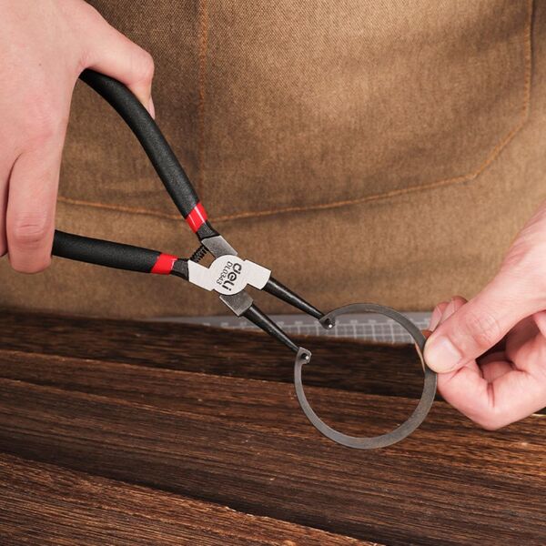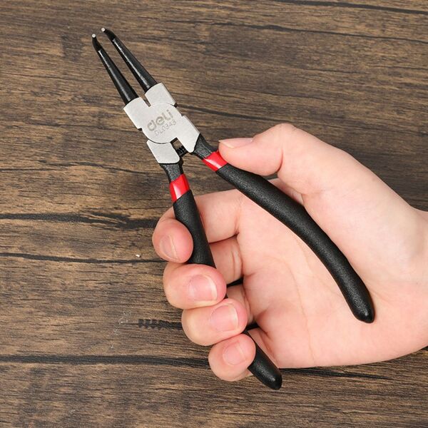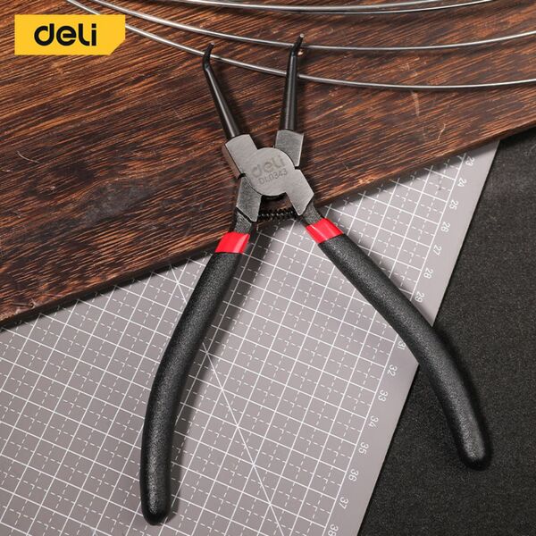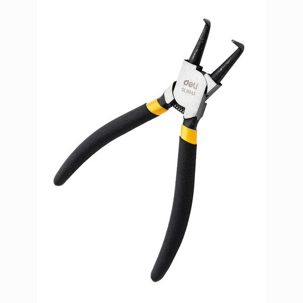 Изогнутый съемник внутренних стопорных колец Deli DL0343 7"; Размер: 7 дюймов. 40Cr. Черная отделка и полировка.