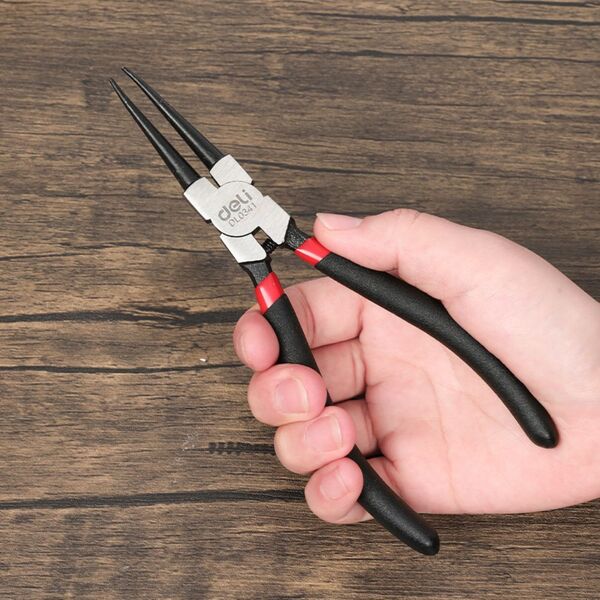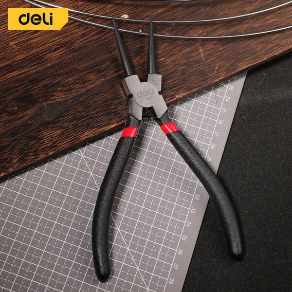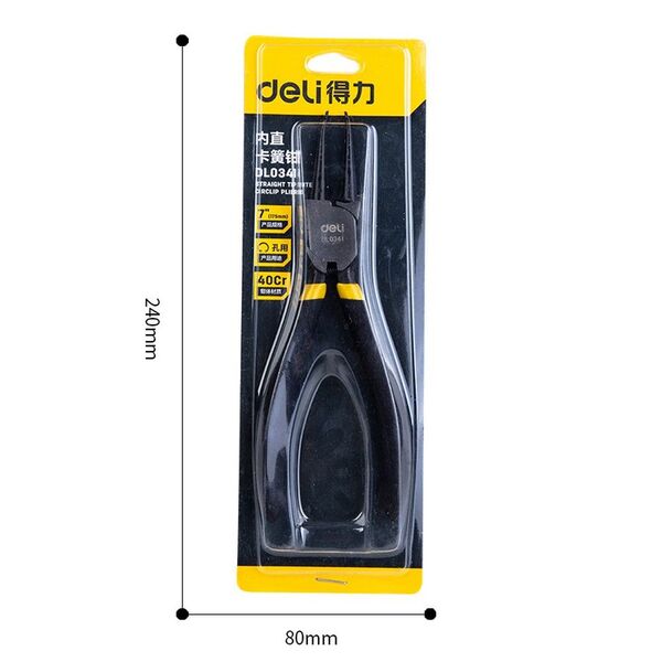Прямой съемник внутренних стопорных колец Deli DL0341 7"; Размер: 7 дюймов. 40Cr. Черная отделка и полировка.