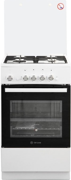 Газовая плита De Luxe 5040.42г(кр)чр белыйТипоразмер 50*50см, эл. розжиг, система ""газ-контроль"" рабочего стола и духового шкафа, подсветка, чугунная решётка.
