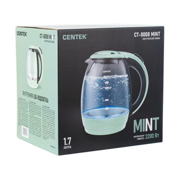 Чайник Centek CT-0008 MINT купить в интернет-магазине TPShop.Ru. Наличный и безналичный расчет, розничные и оптовые продажи. Самовывоз, доставка по Москве и МО, отправка во все регионы России.