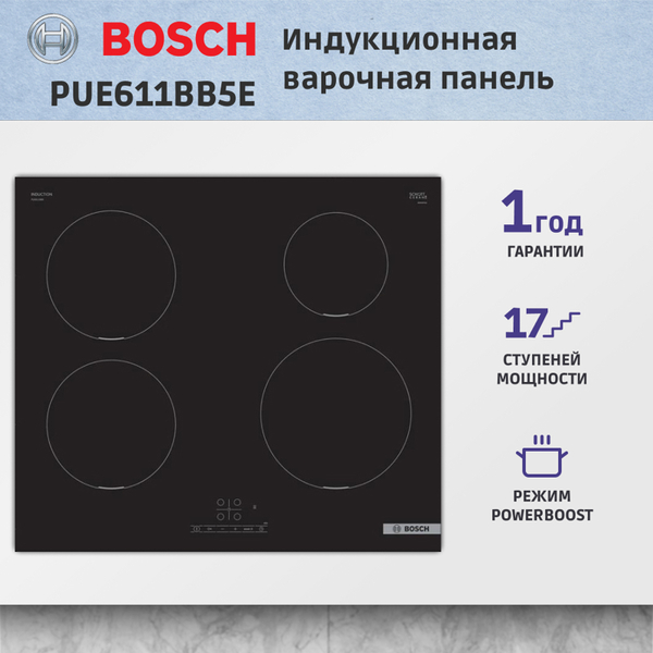 Варочная панель Индукционная варочная поверхность BOSCH PUE611BB5E купить в интернет-магазине TPShop.Ru. Наличный и безналичный расчет, розничные и оптовые продажи. Самовывоз, доставка по Москве и МО, отправка во все регионы России.