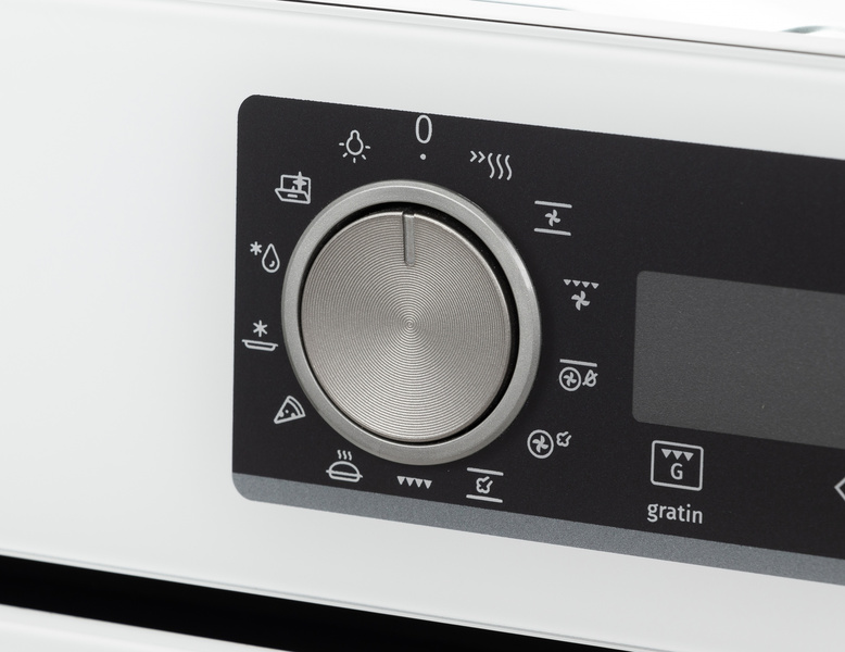 Встраиваемые электрические духовки Korting / Духовой шкаф с сенсорным управлением VISION LED, панель управления - стекло, LED дисплей белого цвета, 10 режимов, утапливаемые поворотные регуляторы, объем духовки 77 л, двухслойное остекление, каталитическая самоочистка, очистка камеры Steam cleaning, режим быстрого нагрева, функция "Гратен", автоматическое отключение, одноуровневые телескопические направляющие, эмаль легкой очистки, в комплекте: глубокий противень и хромированная решетка, цвет: бело