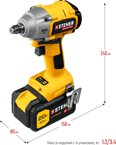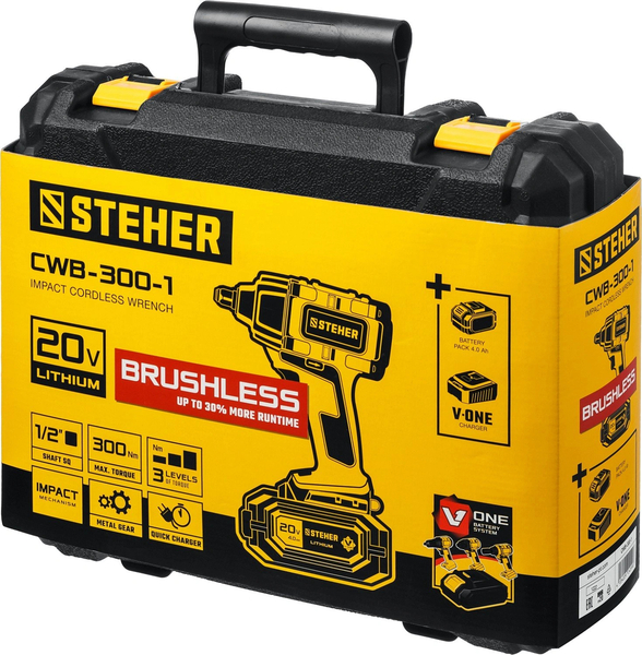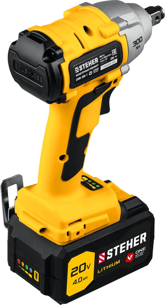 Гайковерт STEHER 20В бесщёточный, 1 АКБ (4Ач), в кейсе. CWB-300-1