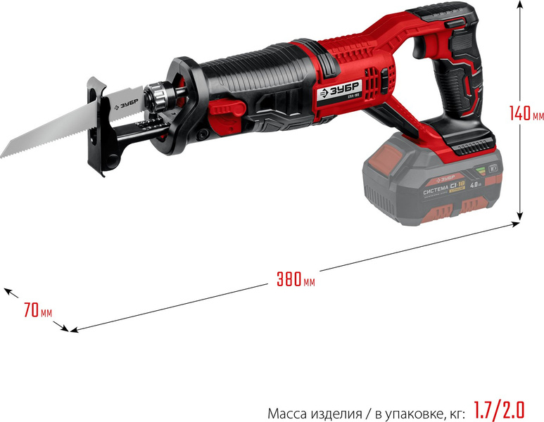 Пила сабельная ЗУБР 18В, без АКБ, в коробке