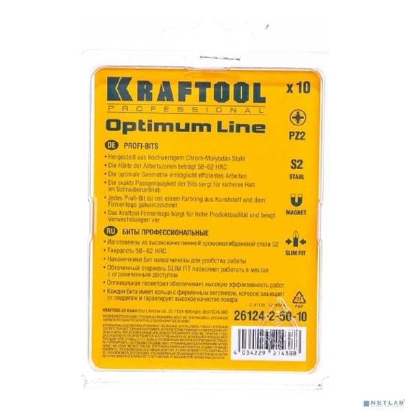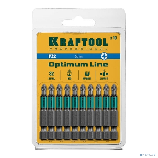 Биты KRAFTOOL Optimum Line, PZ2, 50 мм, тип хвостовика E 1/4", 10 шт в блистере