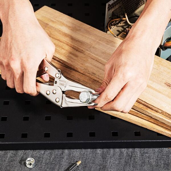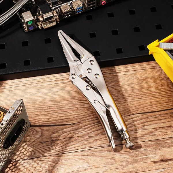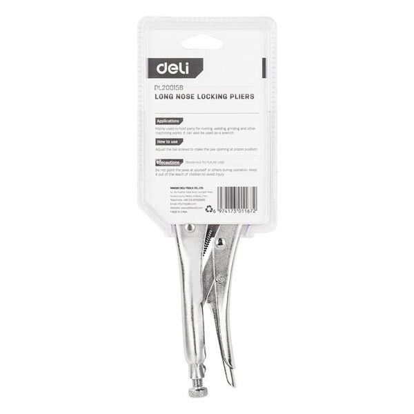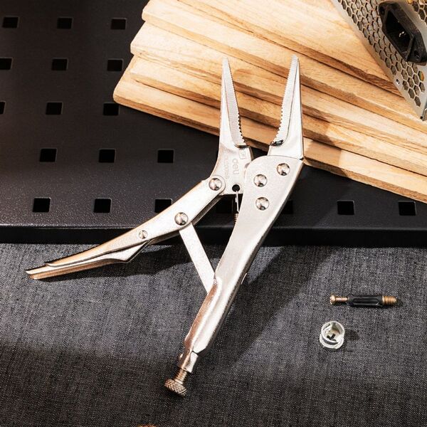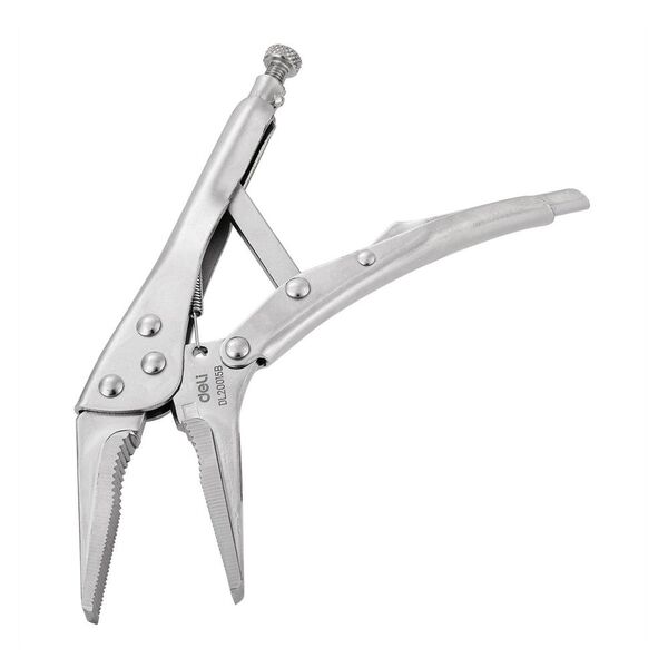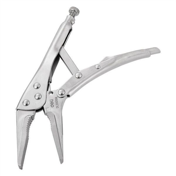 Зажимные клещи удлиненные Deli DL20015B 9"; Рабочий ход 70 мм. Материал высокоуглеродистая сталь CrMo. Регулировочный винт. Быстросъёмная ручка.