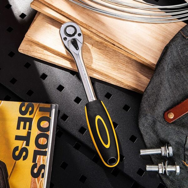 Ключ-трещотка Deli DL2521 1/2"; Размер: 254 мм. Двухкомпонентная трещотка, 45 T (зубья), шестерня Cr-Mo, быстросъемная.