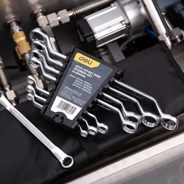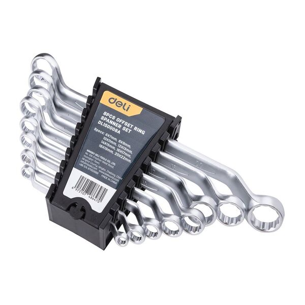Набор накидных изогнутых гаечных ключей 8 шт Deli DL150008A Спецификация: 6x7мм, 8x9мм, 10x11мм, 12x13мм, 14x15мм, 16x17мм, 18x19мм, 20x22мм. Матовая хромированная поверхность. Пластиковая упаковка. купить в интернет-магазине TPShop.Ru. Наличный и безналичный расчет, розничные и оптовые продажи. Самовывоз, доставка по Москве и МО, отправка во все регионы России.