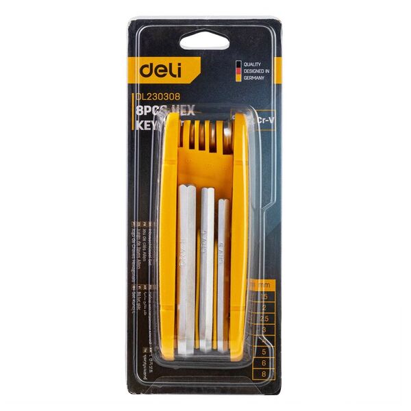 Набор шестигранных ключей Deli DL230308 Материал: CR-V. Спецификация: 1,5,2,2,5,3,4,5,6,8мм.