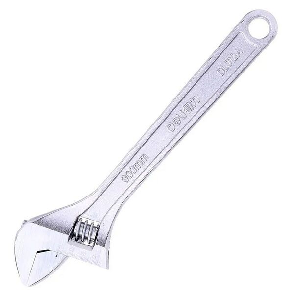 Разводной ключ Deli DL012A 12"; Длина: 300 мм. Регулируемый размер зажима: 0-36 мм. Кованая специальная инструментальная сталь. Хромированная отделка.