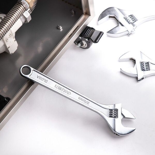 Разводной ключ Deli DL015A 15"; Длина: 350 мм. Регулируемый размер зажима: 0-46 мм. Кованая специальная инструментальная сталь. Хромированная отделка. купить в интернет-магазине TPShop.Ru. Наличный и безналичный расчет, розничные и оптовые продажи. Самовывоз, доставка по Москве и МО, отправка во все регионы России.