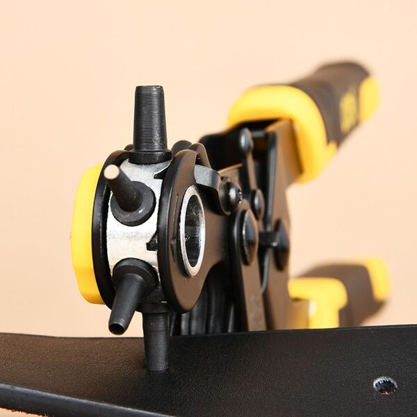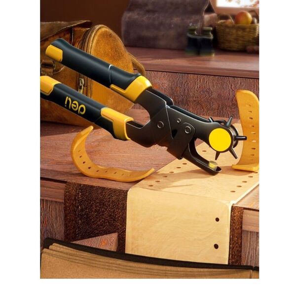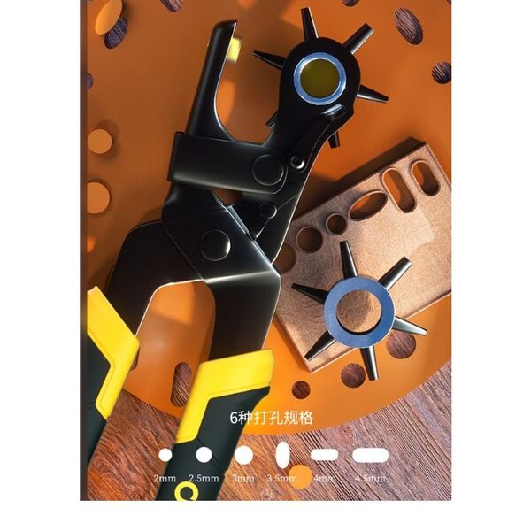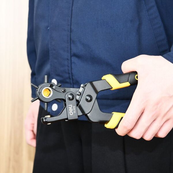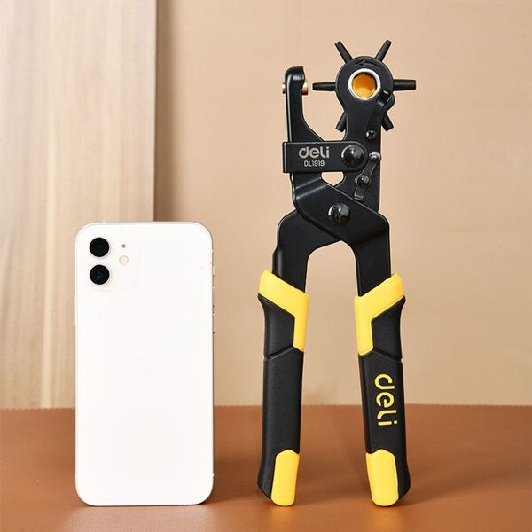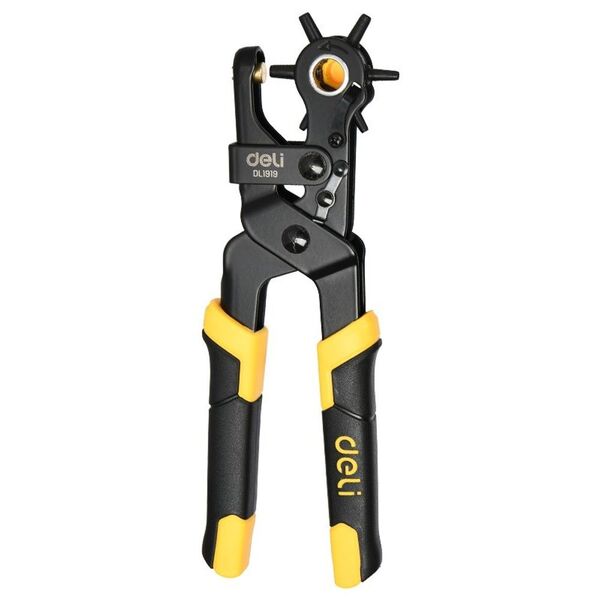 Револьверный дырокол для кожи 6-в-1 Deli DL1919 9"; Размер: 9 дюймов. Диаметр пуансона: 2, 2,5, 3, 3,5, 4, 4,5 мм. Материал: Cr-V.
