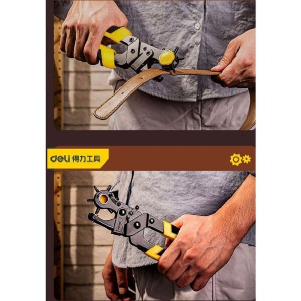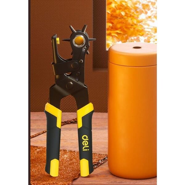 Револьверный дырокол для кожи 6-в-1 двухрычажный Deli DL1919A 225мм, диаметр пуансона: 2, 2, 5, 3, 3, 5, 4, 4, 5мм, сталь Cr-V