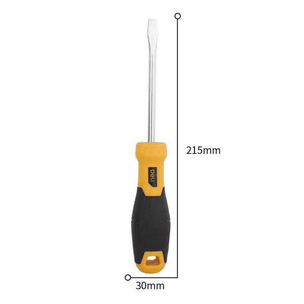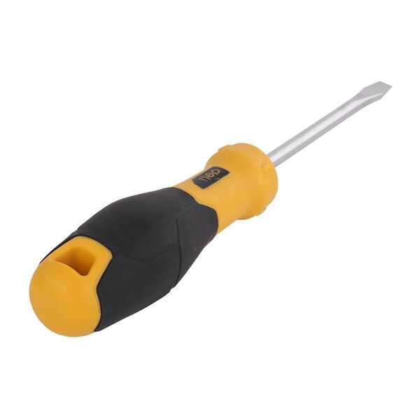 Шлицевая отвертка Deli DL6361001 6х100мм Материал: CR-V. Двухкомпонентная ручка. Хромированная.
