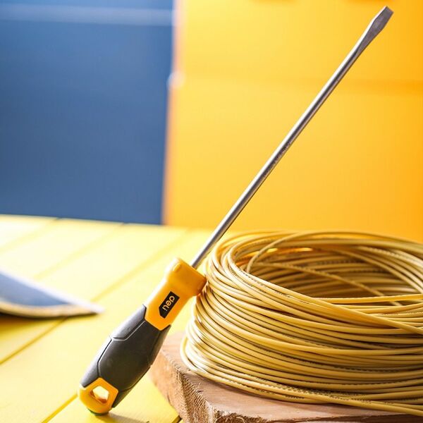 Шлицевая отвертка Deli DL6362001 6х200мм Материал: CR-V. Двухкомпонентная ручка. Хромированная.