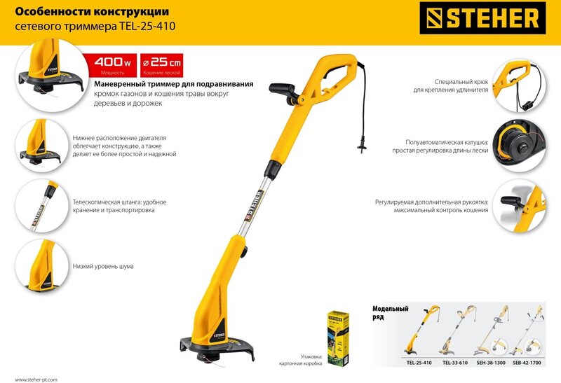 Триммер сетевой STEHER 400 Вт , ш/с 25 см купить в интернет-магазине TPShop.Ru. Наличный и безналичный расчет, розничные и оптовые продажи. Самовывоз, доставка по Москве и МО, отправка во все регионы России.