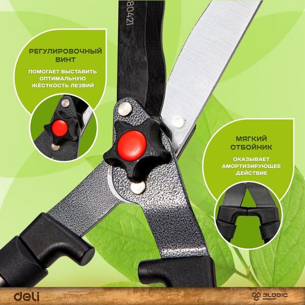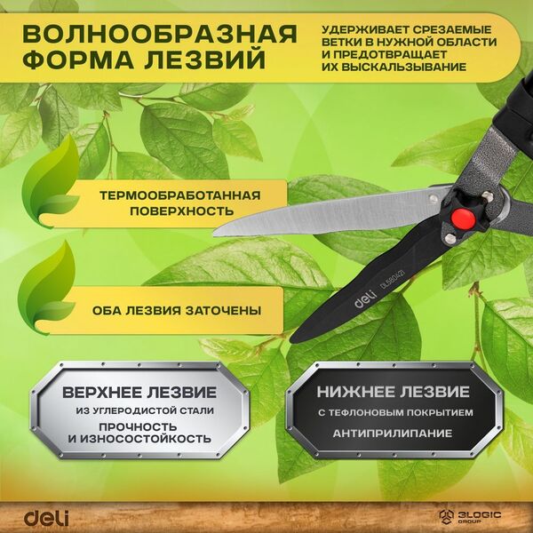 Садовые ножницы Deli DL580421 Размер 26,5";. Сталь 55С. Термообработанная поверхность. Комбинированная ручка с полипропиленновым и термопластичным покрытием.