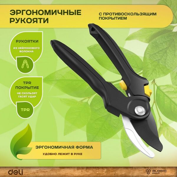 Секатор Deli DL2789A Размер 200 мм. Макс диаметр резки 18 мм. Сталь СК5. Термообработанная поверхность. Комбинированная ручка с полипропиленновым покрытием. купить в интернет-магазине TPShop.Ru. Наличный и безналичный расчет, розничные и оптовые продажи. Самовывоз, доставка по Москве и МО, отправка во все регионы России.