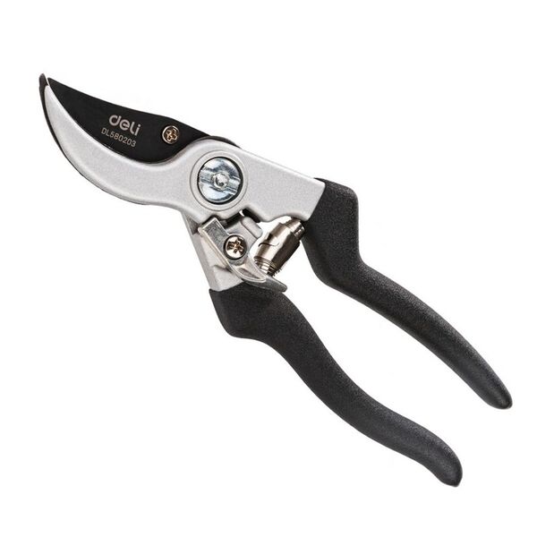 Секатор Deli DL580205 Размер 200 мм. Макс диаметр резки 15 мм. Сталь 55С. Термообработаная поверхность. Тефлоновая уплотнённая пластиковая ручка.