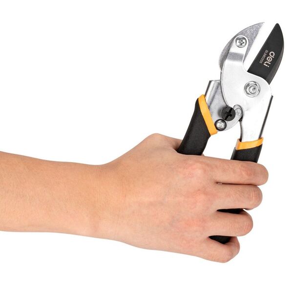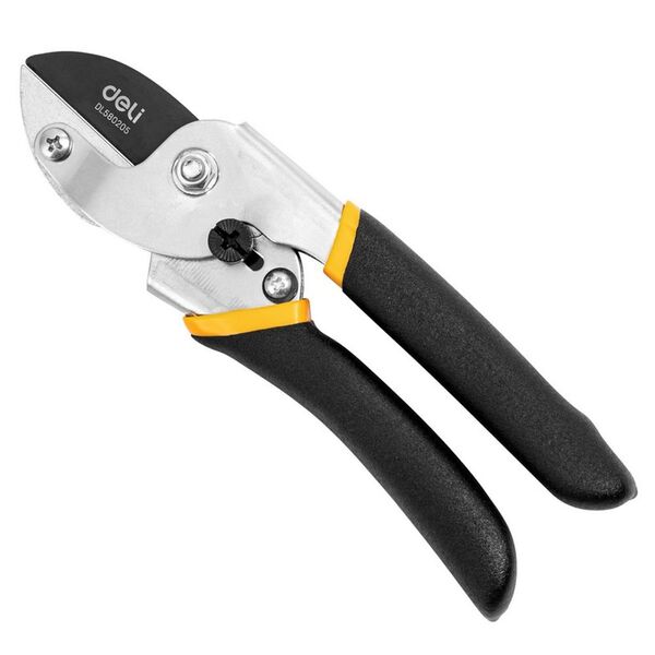 Секатор Deli DL580205 Размер 200 мм. Макс диаметр резки 15 мм. Сталь 55С. Термообработаная поверхность. Тефлоновая уплотнённая пластиковая ручка.