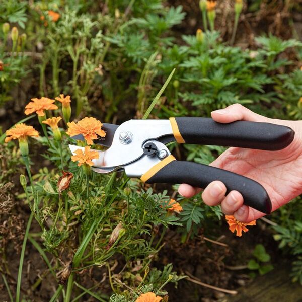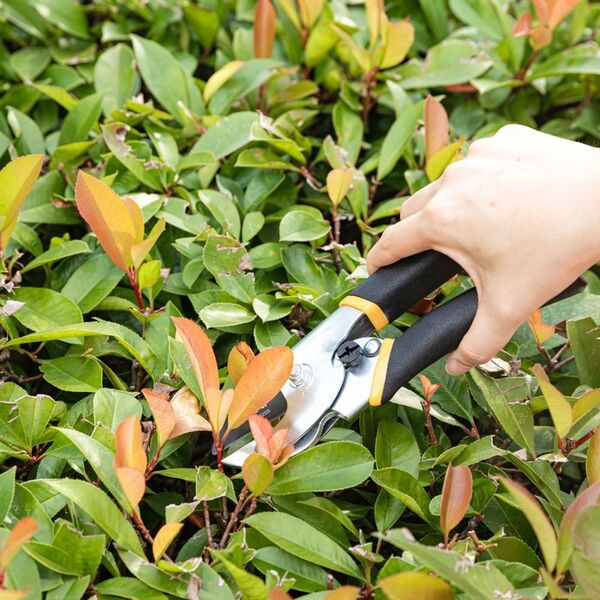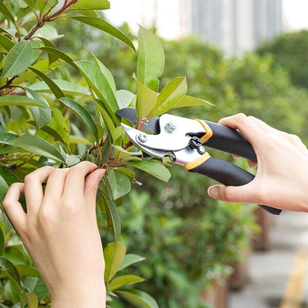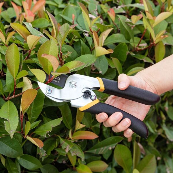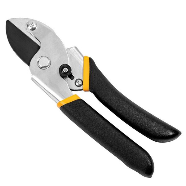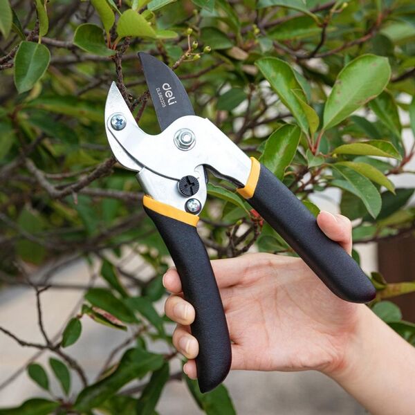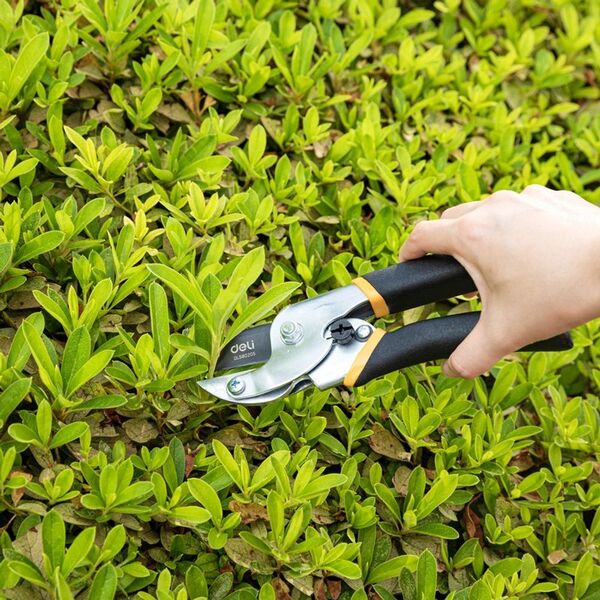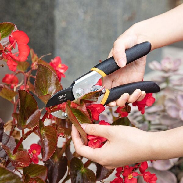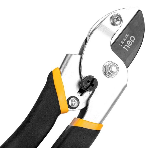 Ножницы садовые Deli DL580123 цельнометаллические, 200мм, макс. диаметр резки 12мм, сталь 55С, возвратная пружина, противоскользящие рукоятки