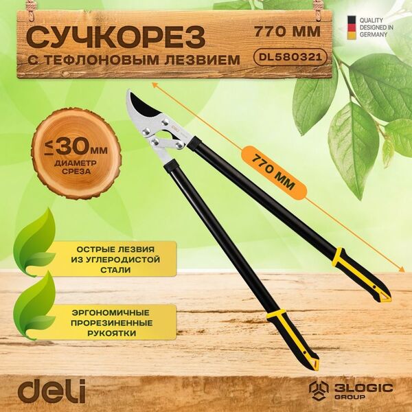 Сучкорез садовый Deli DL580321 Размер 30,5";. Макс диаметр резки 30 мм. Сталь 55С. Термообработанная поверхность. Комбинированная ручка с полипропиленновым и термопластичным покрытием.