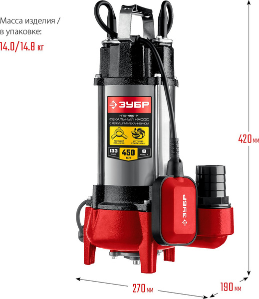 Насос ЗУБР НПФ-450-Р фекальный с режущим механизмом, 450 Вт купить в интернет-магазине TPShop.Ru. Наличный и безналичный расчет, розничные и оптовые продажи. Самовывоз, доставка по Москве и МО, отправка во все регионы России.