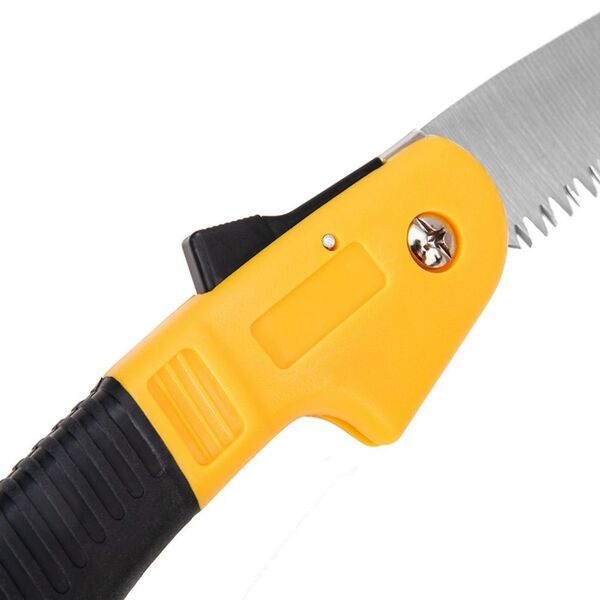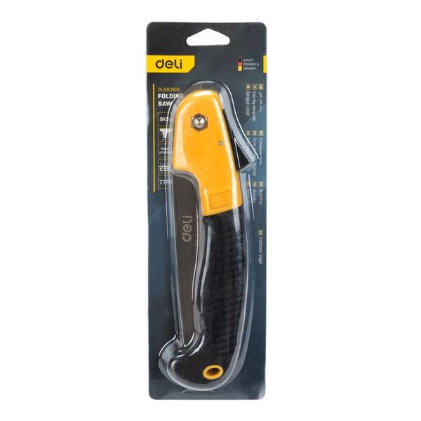 Садовая пила складная Deli DL580618 180мм 7";. Сталь 65 MN. Шаг зубьев 7 TPI. Складное полотно. Обрезиненая ручка. Шлифовка зубов с 3-х сторон, двухрядное распределение кромок