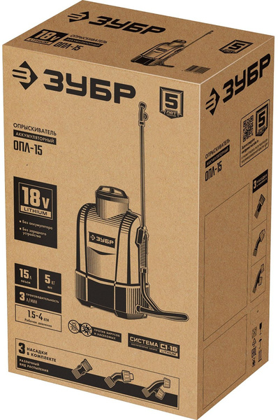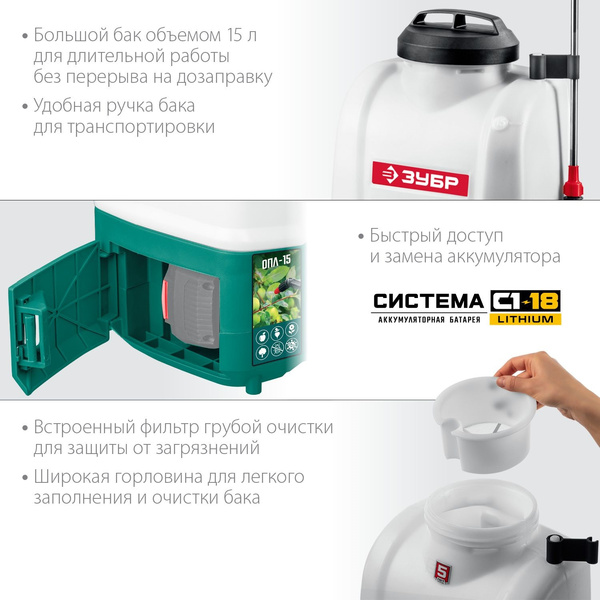 Опрыскиватель ЗУБР 15 л бак, без АКБ, аккумуляторный, Li-Ion 18В купить в интернет-магазине TPShop.Ru. Наличный и безналичный расчет, розничные и оптовые продажи. Самовывоз, доставка по Москве и МО, отправка во все регионы России.