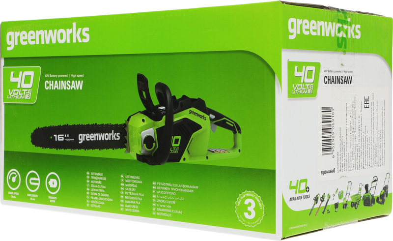 Цепная пила аккумуляторная (2005807UA) GreenWorks GD40CS18, 40V, 40 см, бесщеточная, 1,8 КВТ, с АКБ 2АЧ и ЗУ купить в интернет-магазине TPShop.Ru. Наличный и безналичный расчет, розничные и оптовые продажи. Самовывоз, доставка по Москве и МО, отправка во все регионы России.