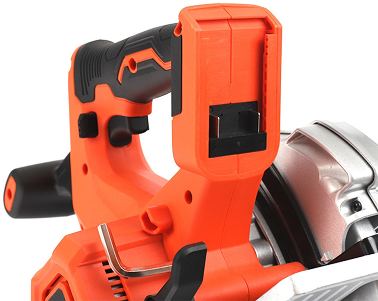 - Обрезиненная нескользящая рукоятка. Регулируемые глубина и угол пила. Единая аккумуляторная платформа UES.