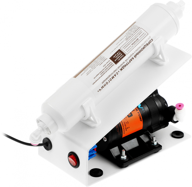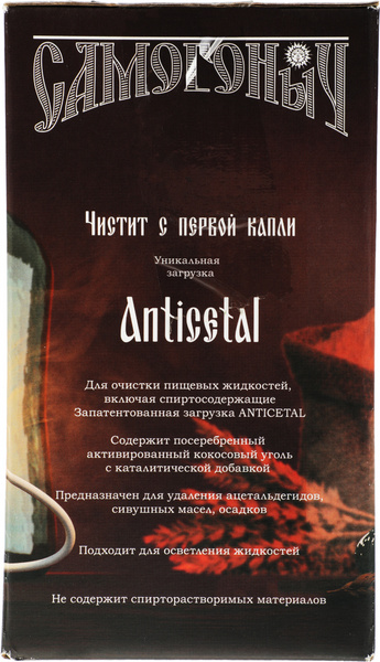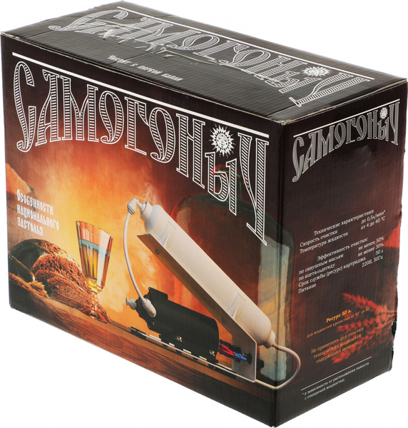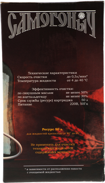 - Разработан специально для очистки спиртосодержащих жидкостей, водки и самогона. Удаляет сивушные масла и альдегиды, вызывающие похмелье. Компактный и удобный — помпа позволяет использовать самый простой вариант: "ведро – фильтр – бутыль".