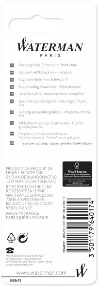 Стержень шариковый Waterman Standard Maxima (CW1964017) F черные чернила блистер
