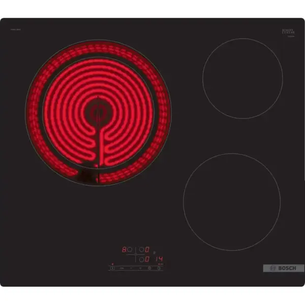 Варочная панель Электрическая варочная панель BOSCH PKK611BB2E 60 cm Черный, 3 зоны нагрева, Размеры прибора (мм), 45 x 592 x 522 mm
