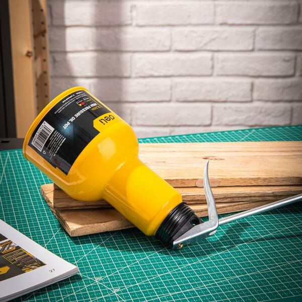 - Флакон: сталь. Носик: нержавеющая сталь. Наконечник носика: медь