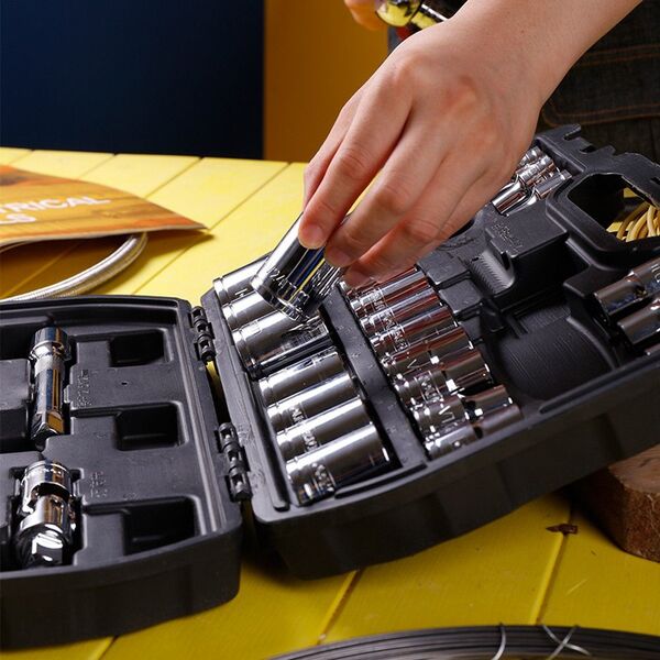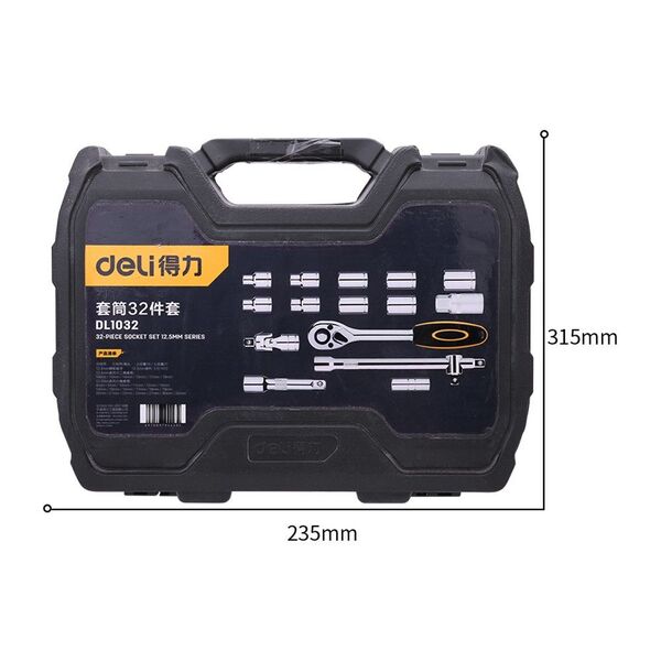 Набор торцевых головок и ключей 32 шт Deli DL1032 1/2"; Муфты из стали 50BV30 Cr-V. Высококачественная пластиковая коробка
