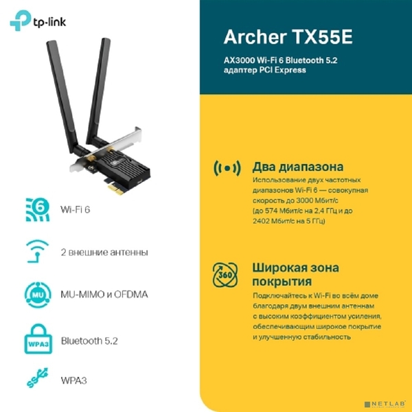 Сетевой адаптер TP-Link Archer TX55E AX3000 Wi-Fi 6 Bluetooth 5.2 адаптер PCI Express купить в интернет-магазине TPShop.Ru. Наличный и безналичный расчет, розничные и оптовые продажи. Самовывоз, доставка по Москве и МО, отправка во все регионы России.
