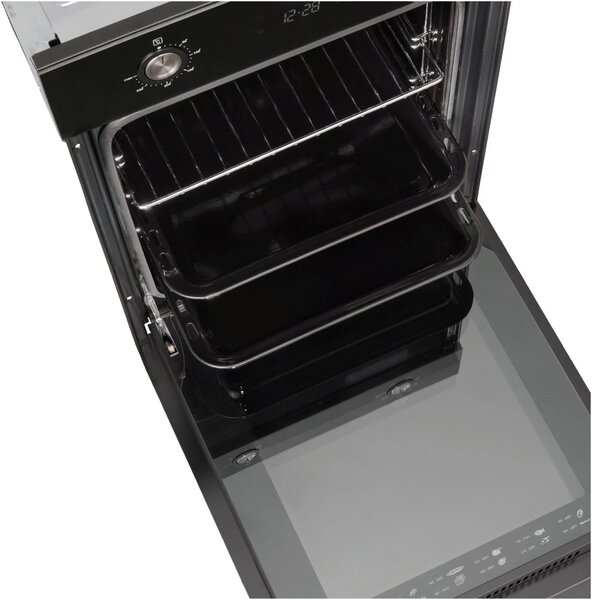 - вентилятор охлаждения, дисплей, полностью стеклянная внутренняя поверхность дверцы духовки