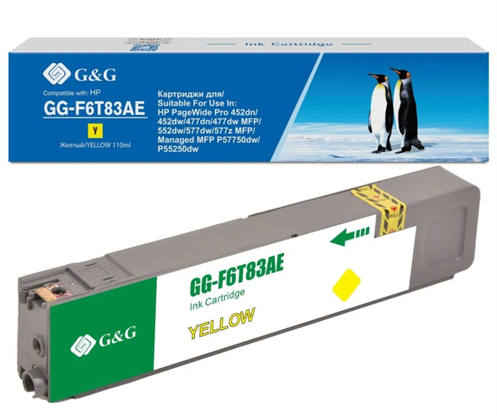 Картридж струйный G&G GG-F6T83AE желтый (110мл) для HP PageWide Pro 452dn/452dw/477dn/477dw MFP купить в интернет-магазине TPShop.Ru. Наличный и безналичный расчет, розничные и оптовые продажи. Самовывоз, доставка по Москве и МО, отправка во все регионы России.