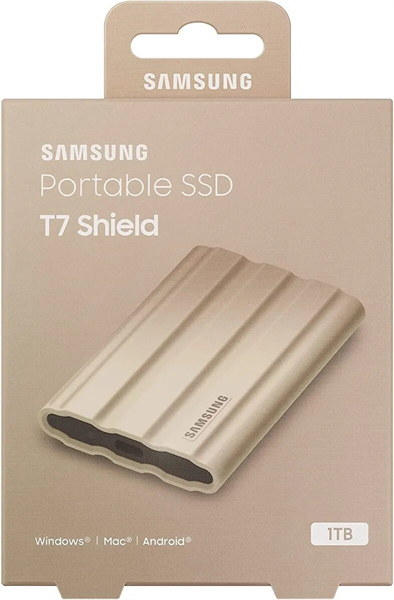 Samsung External SSD T7 Shield, 1TB, Type C-to-C / A, USB 3.2 Gen2, R / W 1050 / 1000MB / s, IP65, 88x59x13mm, 98g, Beige (12 мес.)