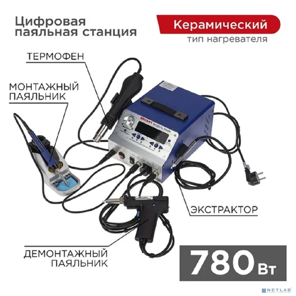 Паяльная станция (паяльник + фен + демонт. паяльник), модель R048K, цифровая, 200-480°C, LED дисплей REXANT купить в интернет-магазине TPShop.Ru. Наличный и безналичный расчет, розничные и оптовые продажи. Самовывоз, доставка по Москве и МО, отправка во все регионы России.