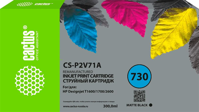 Картридж струйный Cactus CS-P2V71A №730 черный матовый (300мл) для HP Designjet T1600/1700/2600 купить в интернет-магазине TPShop.Ru. Наличный и безналичный расчет, розничные и оптовые продажи. Самовывоз, доставка по Москве и МО, отправка во все регионы России.