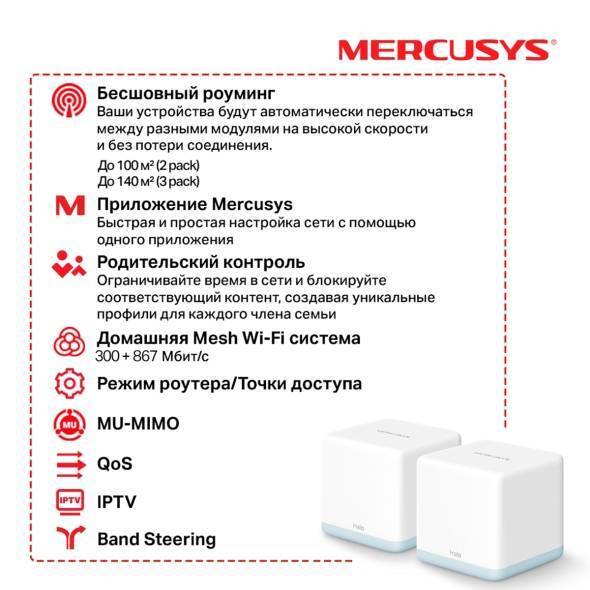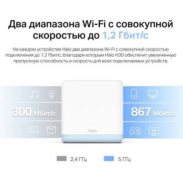 Mercusys Halo H30(2-pack) AC1200 Домашняя Mesh Wi-Fi система купить в интернет-магазине TPShop.Ru. Наличный и безналичный расчет, розничные и оптовые продажи. Самовывоз, доставка по Москве и МО, отправка во все регионы России.