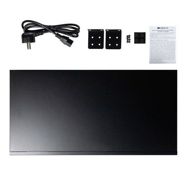- коммутатор OS1218P/190W - 1 шт, кабель питания - 1 шт, комплект для установки в 19-дюймовую стойку - 1 шт, документация