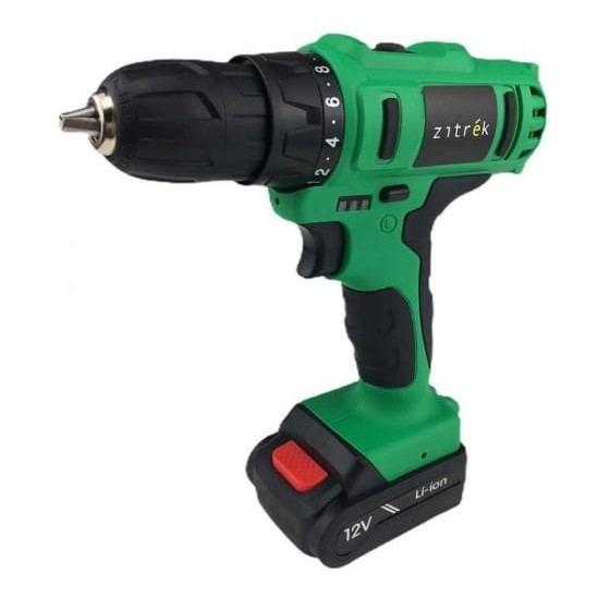 - Дрель аккумуляторная Zitrek Greenpower 12-Li, литиевый аккумулятор 1,5 Ач - 2 шт., двухсторонняя бита, зарядное устройство, руководство по эксплуатации, кейс пластиковый.
