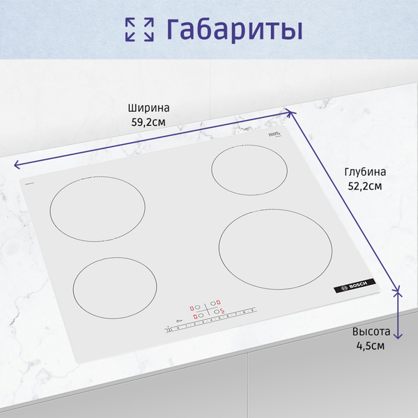 Электрическая варочная панель BOSCH PKK611BB2E 60 cm Черный, 3 зоны нагрева, Размеры прибора (мм), 45 x 592 x 522 mm