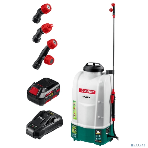 - Аккумуляторный опрыскиватель ЗУБР 18 В, 4 А*ч, 15 л ОПЛ-15-41 подходит для дезинфекции, мытья окон и стен.