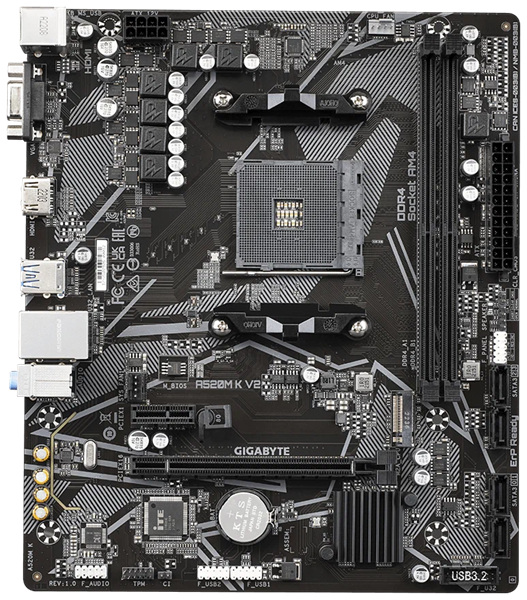 Материнская плата Материнская плата Gigabyte A520M K V2 Soc-AM4 AMD A520 2xDDR4 mATX AC`97 8ch(7.1) GbLAN RAID+VGA+HDMI