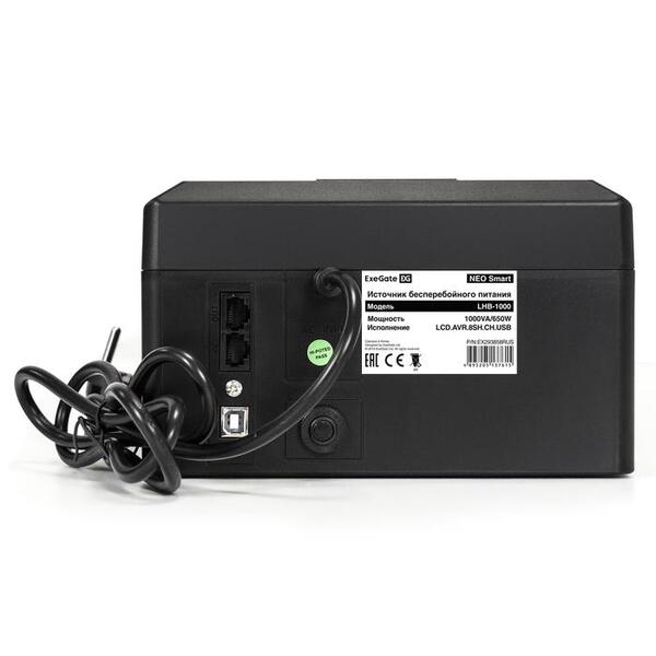 Exegate EX293858RUS ИБП ExeGate NEO Smart LHB-1000.LCD.AVR.8SH.CH.USB <1000VA/650W, LCD, AVR, 8*Schuko, USB, 4*USB-порта для зарядки, Black>